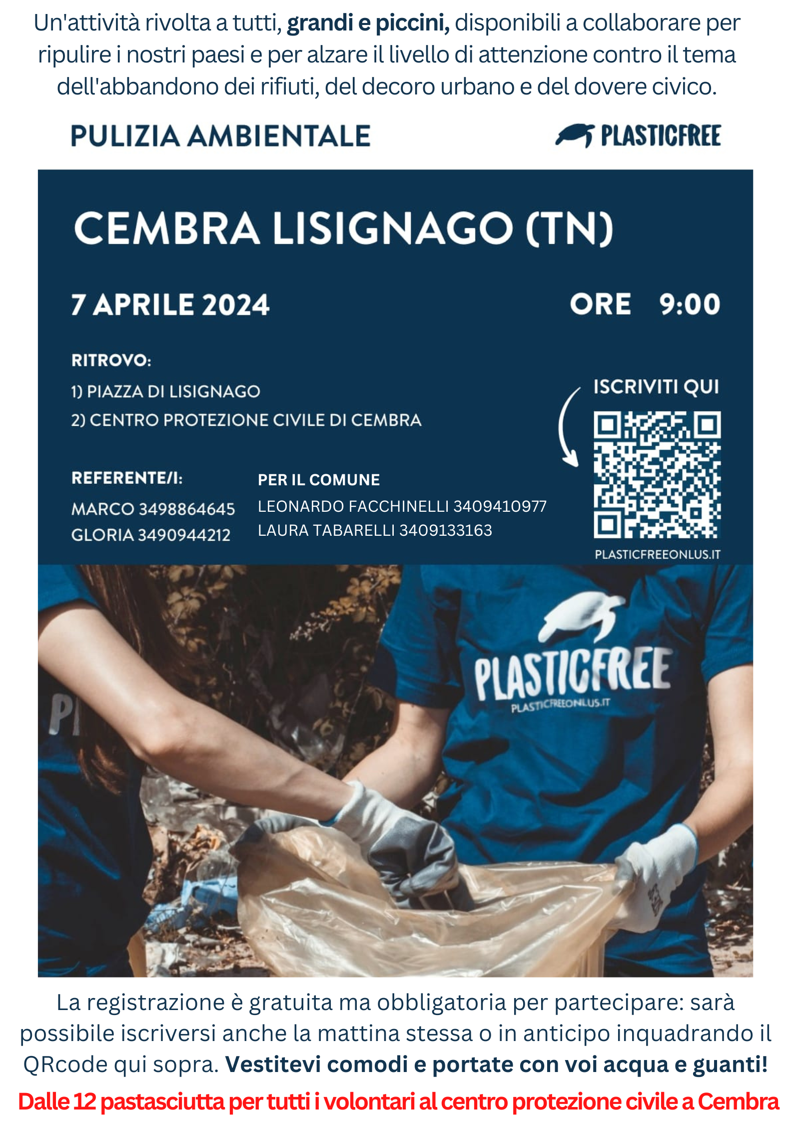 Per partecipare è semplice, basta iscriversi a questo link www.plasticfreeonlus.it/eventi/6885/7-apr-cembra-lisignago o contattando i numeri pubblicati in locandina e partecipare portando con sé dei guanti, una borraccia d'acqua, il sorriso e buona volontà.